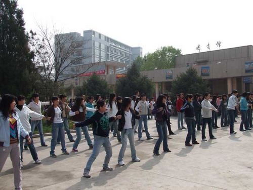 员工做早操