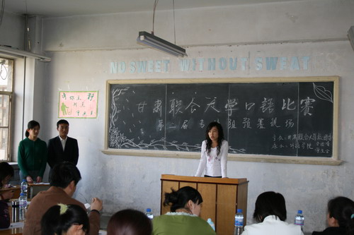 公司承办的甘肃省第三届高职高专英语演讲赛比赛现场