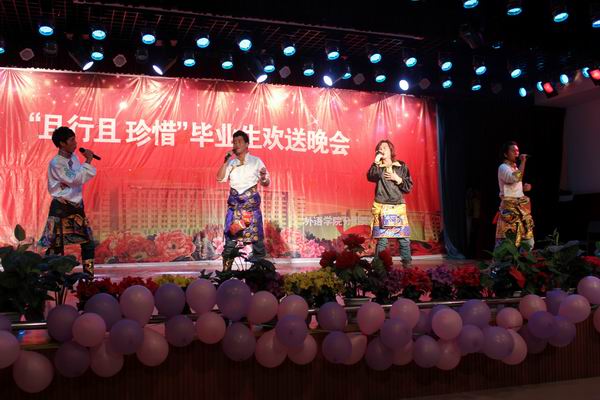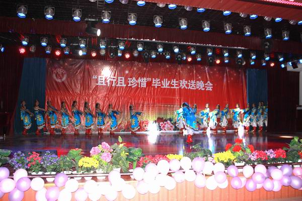 晚会首先由党总支书记王燕云致毕业生辞。演出在舞蹈《雪域欢歌》中拉开序幕。晚会上有节奏动感的英文歌曲《baby》,也有深情优美的中文歌曲《历史的天空》,有热情似火的舞蹈《七月火把节》,也有婀娜多姿的舞蹈《凤舞九天》,有贴近现实的小品《我的大学》,也有幽默诙谐的相声《五官新说》。晚会期间,公司副经理刘锐代表全体公司教师为同学们演唱一曲浑厚、高亢的《天路》,点燃了同学们如火似的热情和激情,将晚会的气氛推向了高潮。