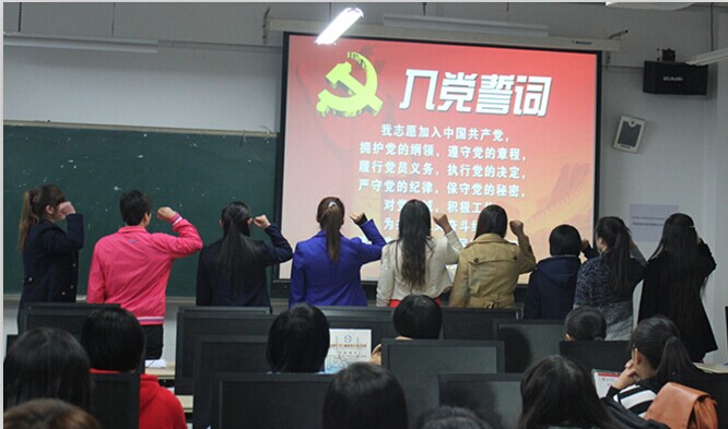 开班典礼在雄壮的《国际歌》声中拉开了帷幕。首先8位预备党进行了庄严宣誓,入党誓词的声音在整个会场回荡,使与会的党员重温了入党誓词,68位学员心灵受到洗礼,明确了自己努力的方向。预备党员成倩代表8位同学做了精彩发言,她感谢党组织对他们的培养教育。
