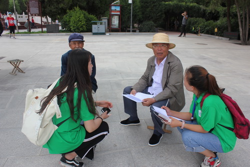 上午,实践团队所有成员分成两人一组在会师园区、城中心开始做关于“会宁红色旅游文化认知和感受”的问卷调查。在调查过程中,实践队员真诚的与不同人群进行交流;向旅客询问对于红色文化的认知以及对会宁红色旅游景区的感受,在问到当地的老年人时,他们看到问卷设置的一些题目,还会为队员们讲述他们所熟悉的历史,虽然偶尔也会遇到方言交流不畅的问题,但队员们还是坦诚耐心的完成交流,做好一份份问卷。