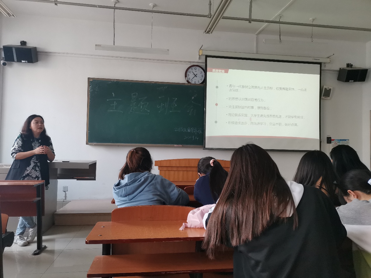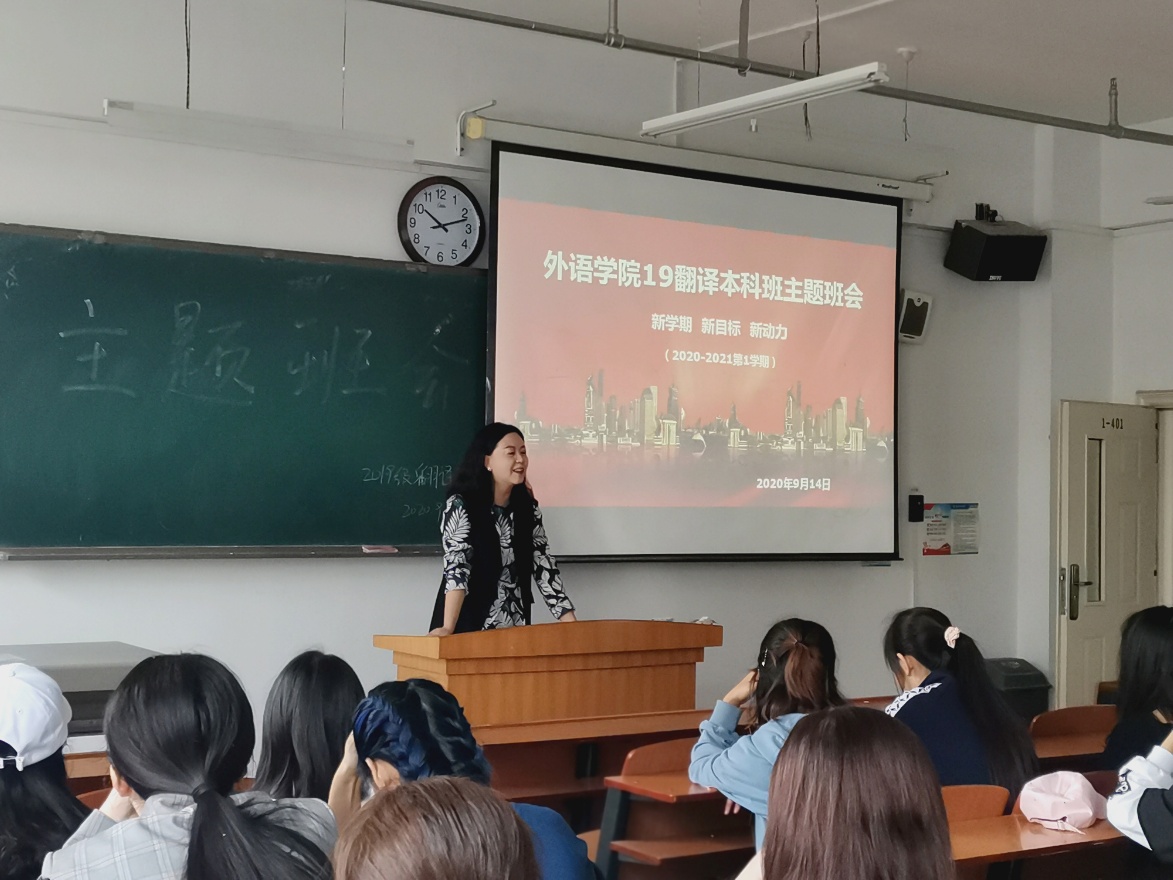 本学期由曹玲老师担任19级翻译班班主任,也是该班进入二年级学习,面临着专业四级考试等重要任务的时期。曹老师要求全班同学要在新学期树立新目标,激发新动力,积极参加各项提升专业能力的活动。提醒同学们注重日常个人卫生,季节交替注意增加衣服,加强锻炼,注意饮食。同时,就近期公司各项活动和课堂出勤等再次强调请假程序;通过分享个人求学奋斗的经历,曹老师鼓励同学们要树立理想与人生目标,关注国内外时事,与专业学习结合,向先进学习,追求进步。