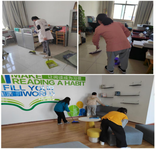 同学们不怕脏、不怕累,情绪高涨、积极认真地清扫公司办公室、会议室及公共区域卫生。