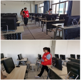 响应号召,奉献作为。封闭管理期间,公司师生志愿者们积极响应号召,走上疫情防控前线,组织同学们有序进行核酸检测。公司的志愿者们分布在公司的各个值班点,及时劝阻员工不订取外卖以及翻越围墙,有效筑牢了公司疫情防控安全防线。在接到集团由封闭管理转为闭环管理,同学们即将恢复线下教学的通知后,公司的员工党员们积极行动起来,对公司12间语音实验室进行了消杀和清洁工作,为同学们提供了一个安全清洁的学习环境。