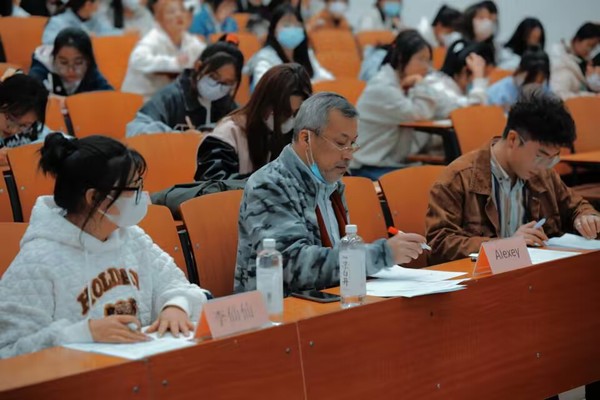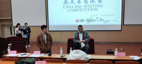 决赛现场,66名选手被分为五组,每位参赛选手严格遵守比赛规则。四位评委:Erdeneev Alexey、杨龙、李仙仙、管宇茜对各位选手的表现进行了总结,指出同学们所存在的问题,与参赛选手们共同交流英文书写规范及技巧。