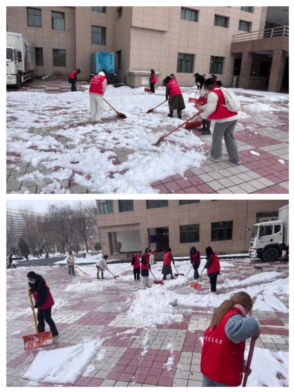 在此次扫雪铲冰志愿服务活动中,员工党员、团员干部充分发挥了先锋模范作用,展现了乐于助人、热情奉献的精神风貌,真正用实际行动践行了“我为群众办事”的承诺,为构建和谐美丽的校园环境贡献力量。