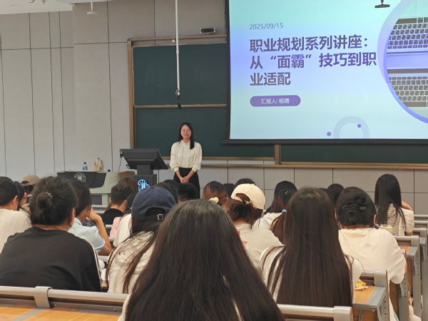 随后,团学办杨晴老师以“从面霸技巧到职业适配” 为主题,结合招聘经验,讲解面试礼仪及面试场景分类应答策略等方面进行实战指导,重点分享了外语类岗位面试中应答的技巧与注意事项。同时,杨老师引导同学们结合个人职业兴趣、能力优势与行业发展趋势,明确职业定位,避免盲目求职。